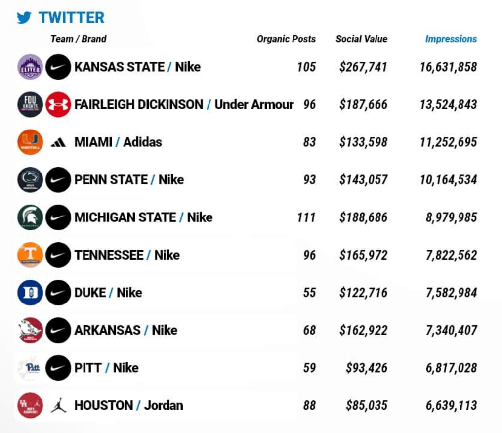 The money they get from the NCAA is one thing, but the true money comes from the exposure of being in the tournament. Teams with a big upset will gain social media exposure worth hundreds of thousands of dollars. After 16 seed FDU beat 1 seed Purdue last year, they earned nearly $70,000 in social value from a single post on twitter. Here is the outlook of how teams faired after the opening weekend of the 2023 Men’s Tournament.